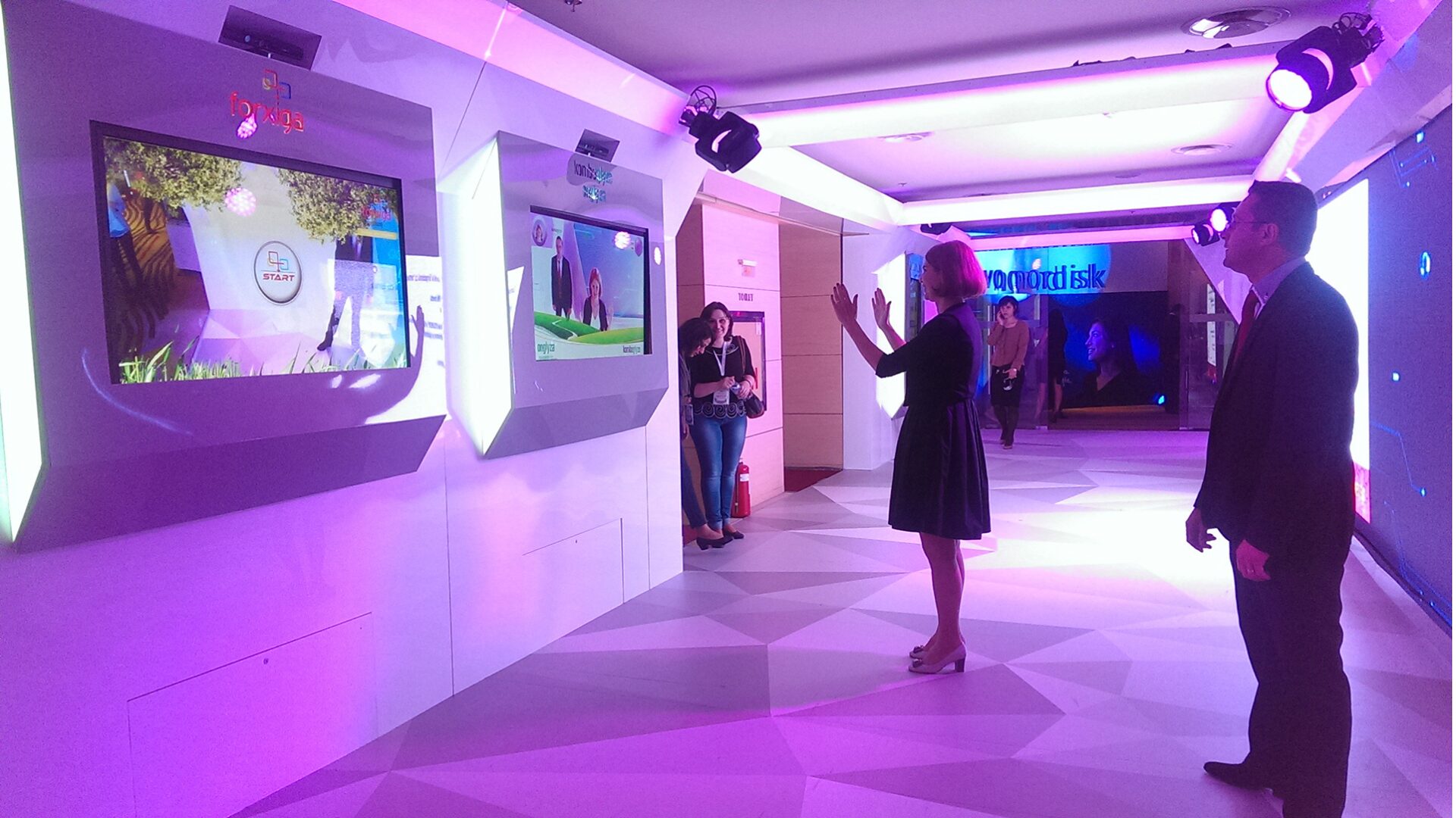 Χρησιμοποιώντας ευαίσθητους ηλεκτρονικούς αισθητήρες και κάμερες που “βλέπουν” τρισδιάστατα, αιχμαλωτίζουμε αμέσως την προσοχή των θεατών. Ο συνδυασμός αυτής της τεχνολογίας με προτζέκτορες ή άλλα προβολικά συστήματα, δημιουργούν ένα σημείο ενδιαφέροντος με πρωτότυπο τρόπο , όπου οι θεατές εμπλέκονται ενεργά, συμμετέχοντας, συζητώντας και αλληλεπιδρώντας.